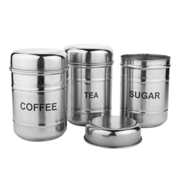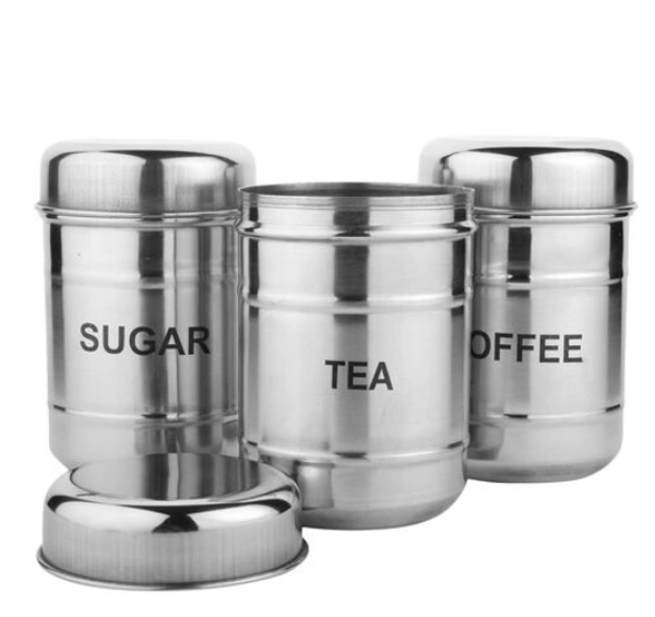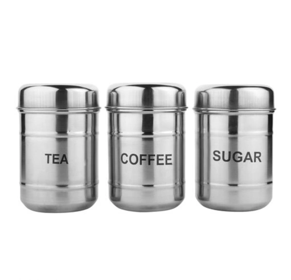 It Has 3 Pcs Stainless Steel Tea Coffee Sugar Canister Set