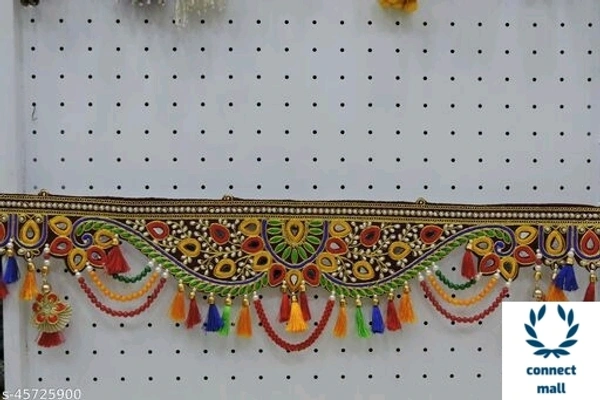 his is a traditional decorative hanging known as Toran. It is a handmade item. This can be hanged on doors as well as walls and can be used on many occasions like Pooja, Festivals, House Warming, Parties, Marriages, and inaugurations. Decorate your home/doors during the festive season and bring luck to you home with this auspicious and elegant door hanging toran. Moti toran size are 36 inch.