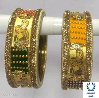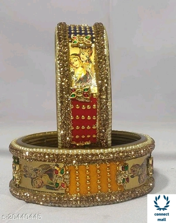 Adjustable Sizing Glass Metal Designer Bangles Pack of 2