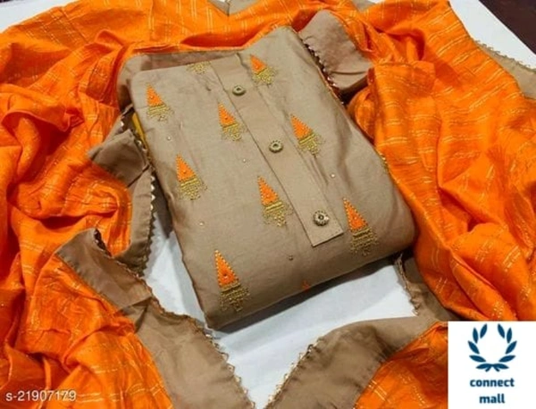 ALISHA Pretty Jam Cotton Fabric Embroidered UnStitched Salwar Suit With Banarasi Silk Fabric Dupatta