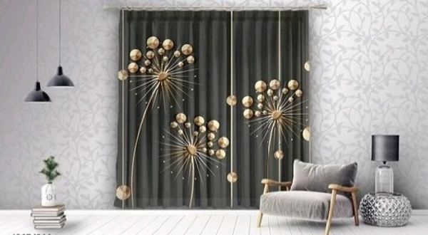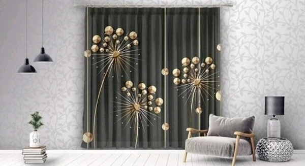 ANMOLFAB Polyester 3D Digital Black Sparkle Printed Day / Night Room Darkening For Room/Living Room Curtain Pack of 2