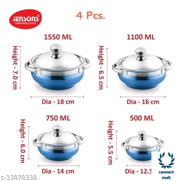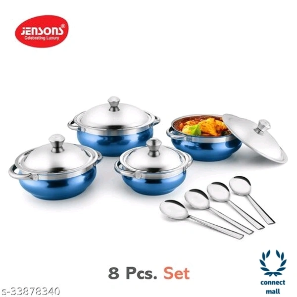 Jensons 4 Handi with lid + 4 Serving Spoon Induction Bottom handi set.