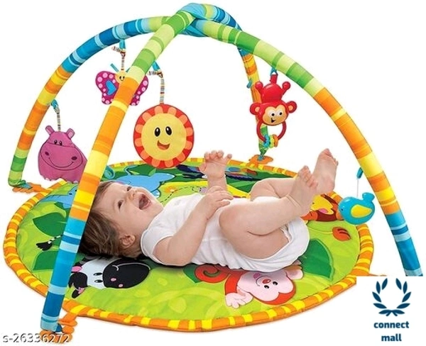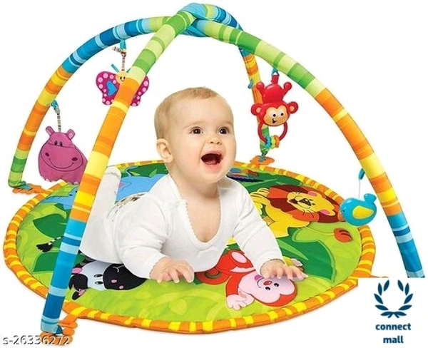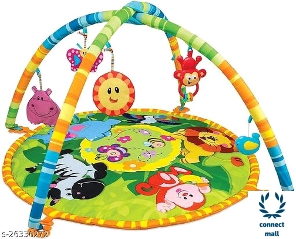 Baby Activity Gym with Hanging Rattles and Teether (Cute Jungle Print) - Multicolor