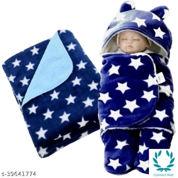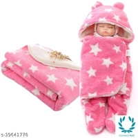 Baby Blankets New Born Combo Pack of Wrapper Hooded Blanket And Baby Bed Crib Blanket Pack of 2 Fabric: Microfiber