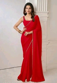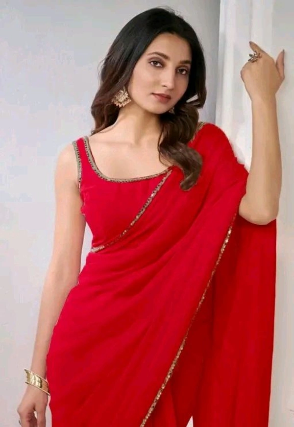 Plain Redcolour Georgette Saree With Mirror Work Lace Border