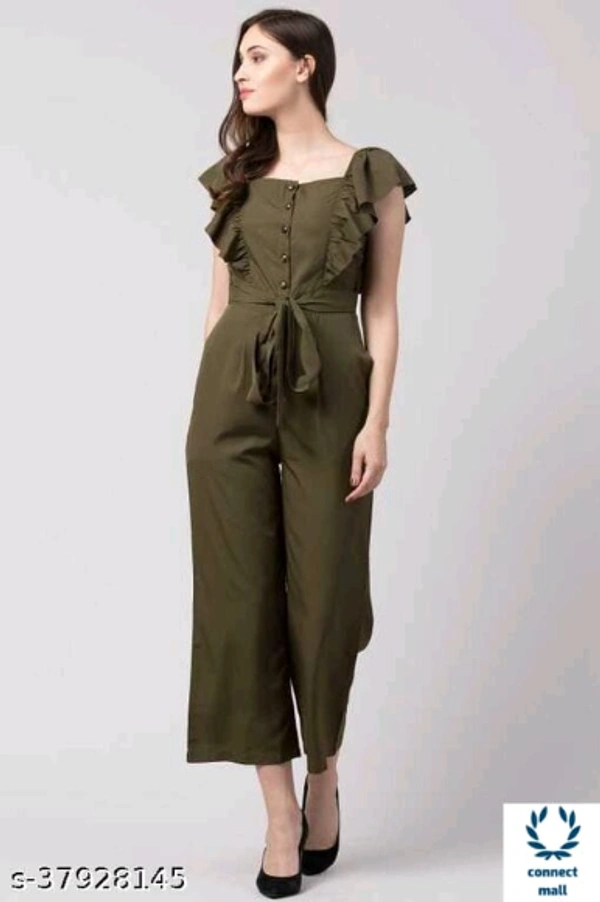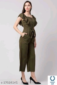 Classy Graceful Women JumpsuitsFabric: CrepeSleeve Length: Short SleevesPattern: SolidMultipack: 1Sizes: L (Bust Size: 36 in, Length Size: 51 in, Waist Size: 32 in)