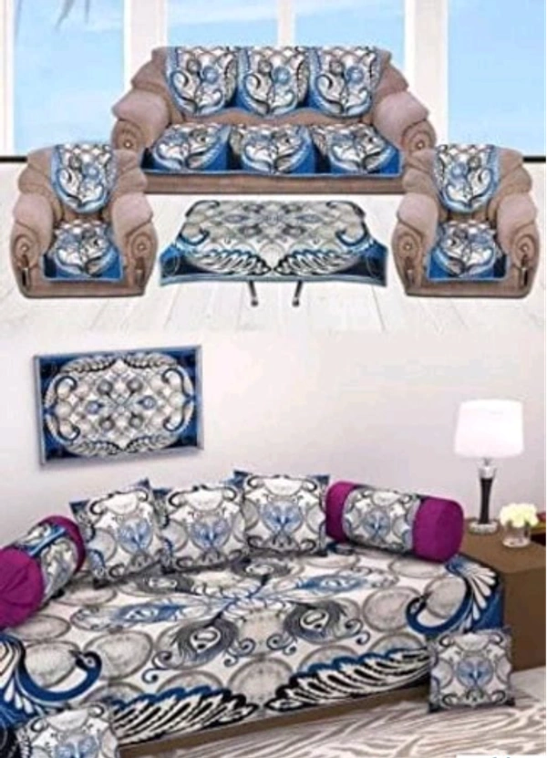 Description: It Has 1 Piece Of Single Bed Sheet, 5 Pieces Of Cushion Covers, 2 Pieces Of Bolster Covers , 1 pc of table cover & 10 Pieces Of Sofa Covers.