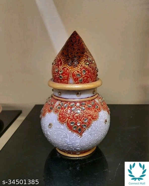 Designer Decorative Kalash for Pooja. Size: 7 inch height X 3 inch width X 3.8 inch Length Color - Multicolor Material - Marble Est. Delivery - 7-12 Working Days. Merchant Details - Generic Name: Kalash Packed By: Order Happiness Packer Address: SCO-5,6. Lower Ground Vishal Mega Mart. Sec-32A. Chandigarh Road.1. Manufactured By: Order Happiness Manufacturer's Address: Ludhiana, 141014 Country Of Manufacture: India Weight: 1000 gm Package Count: 1 SKU Code: OH-P0012