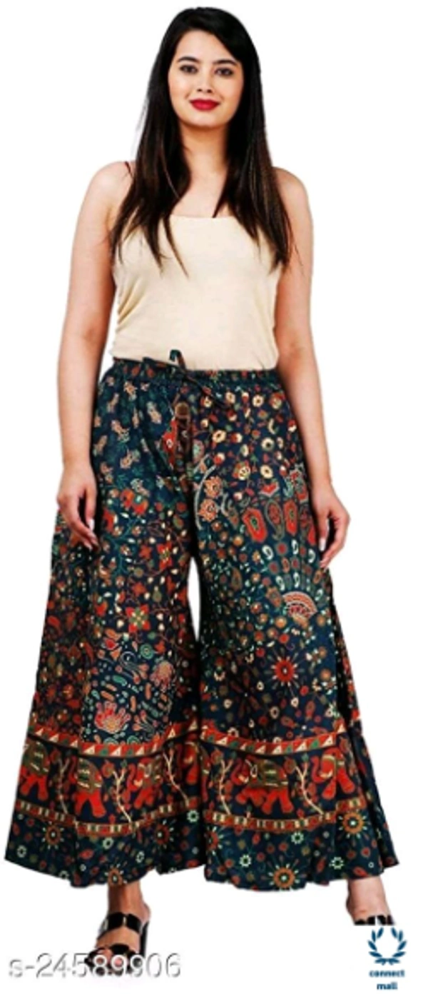 G4Girl jaipuri palazzo divider pant greenFabric: CottonPattern: PrintedMultipack: 1Sizes: Free Size (Waist Size: 38 in, Length Size: 39 in)
