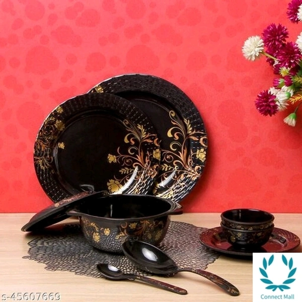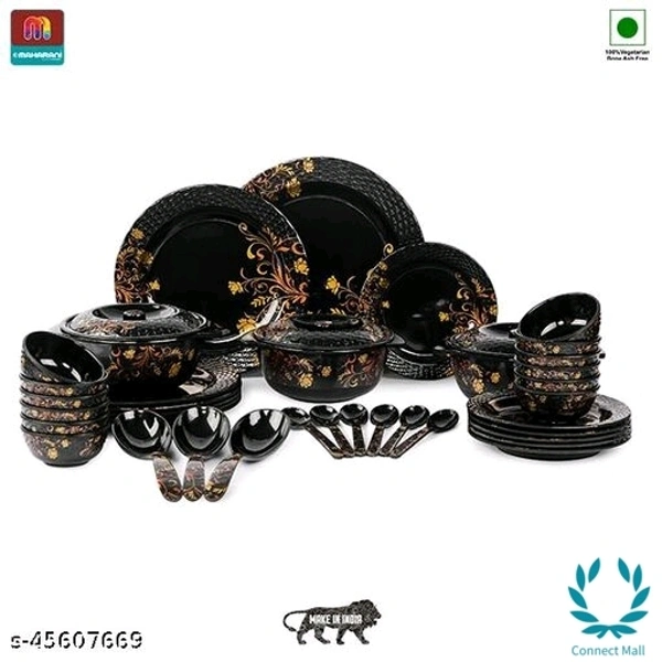 Bring Convenience to your dinner table with this AE Maharani Lotus Series Dinner Set that comprises of forty pieces for unmatched convenience. It has been crafted from fine quality double coating Melamine for extended durability to add a refined touch to your dining experience. Sales Package • 1 Rice Plate, 6 Dinner Plates, 6 Half Plates, 12 Bowl, 3 Donga, 3 Donga Lid, 3 Serving spoon, 6 Eating