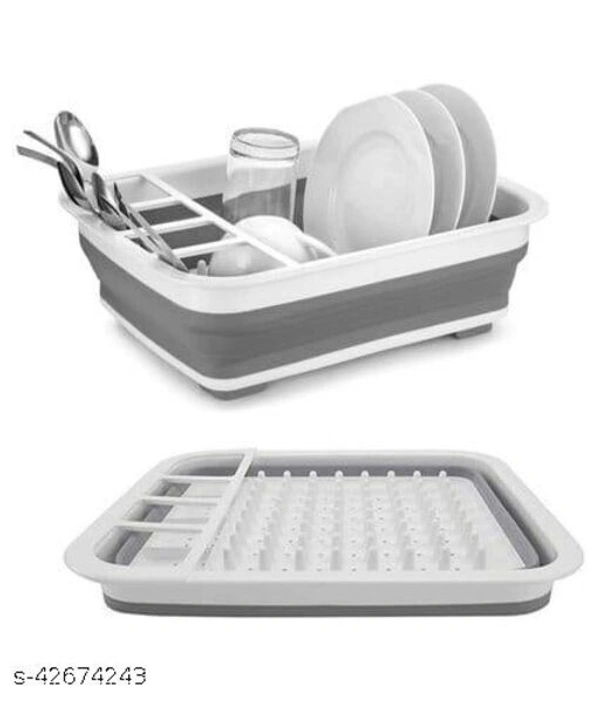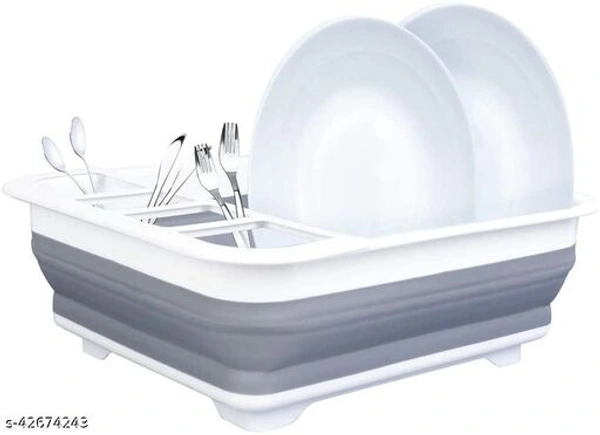 Grey & White Colilor Silicon Plastic Folding Collapsible Kitchen Sink, Dish Rack Drainer Basket