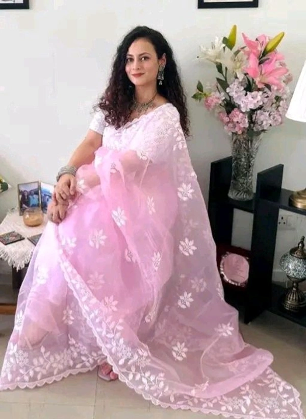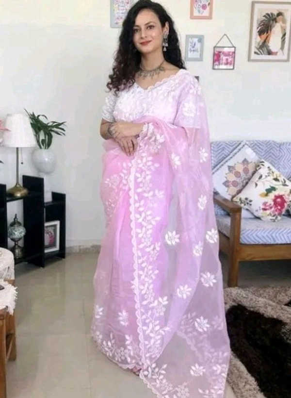 | Name | Jay Khodiyar Creation Embroderd Pink Colour Organza Saree |