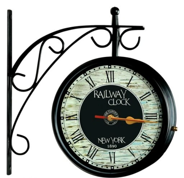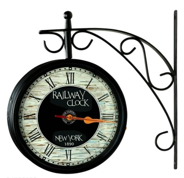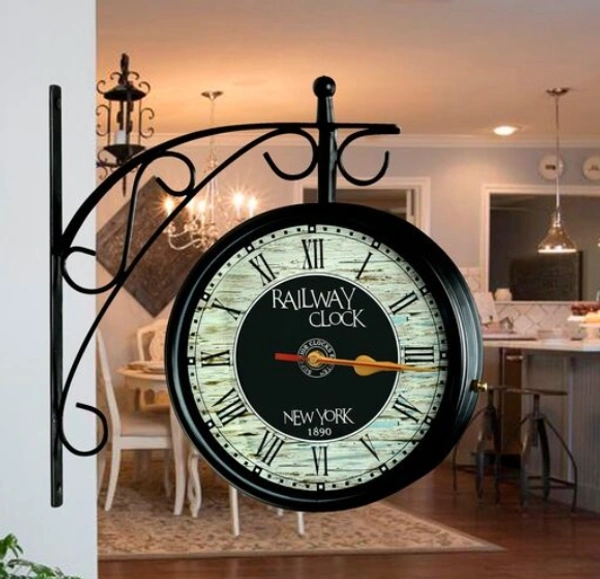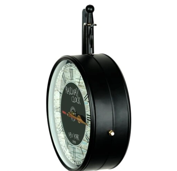 Keeratly Vintage Railway Clock Two Side Metal Wall Clock (Clock - 8 Inch)