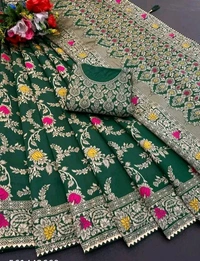 - Premium Material: Made from authentic and luxurious Banarsi silk for a rich texture and feel.