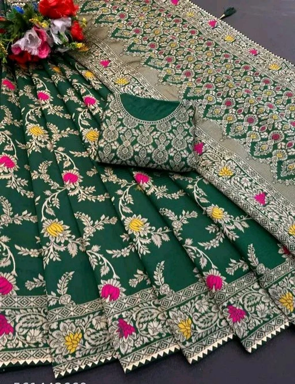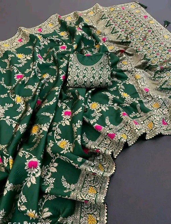 Latest Design Banarsi Silk Saree For Women With Unstiched Blouse