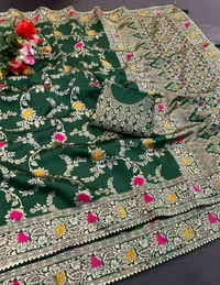Made with premium-quality Banarsi silk, this saree is a blend of tradition and elegance. It offers unmatched comfort, a regal look, and the vibrant design ensures you stand out in any crowd.