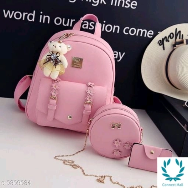 P.U. Leather Backpack SetMaterial: PUPattern: Self DesignMultipack: 3Sizes:Free Size (Length Size: 31 in Width Size: 14 in Height Size: 36 in)Country of Origin: India