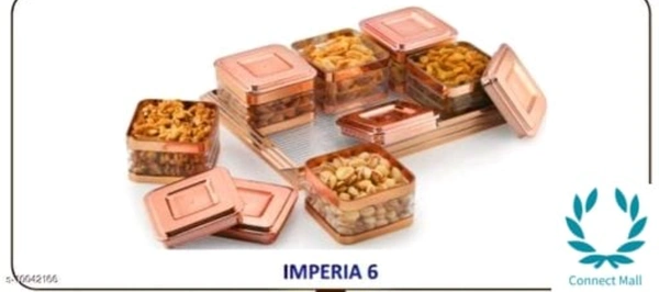 Liza Imperia 6 Pieces Jar Set With Tray - 250 ml, , GoldMaterial: PlasticPack: Pack of 1Product Length: 40 cmProduct Breadth: 25 cmProduct Height: 9.5 cmCountry of Origin: India