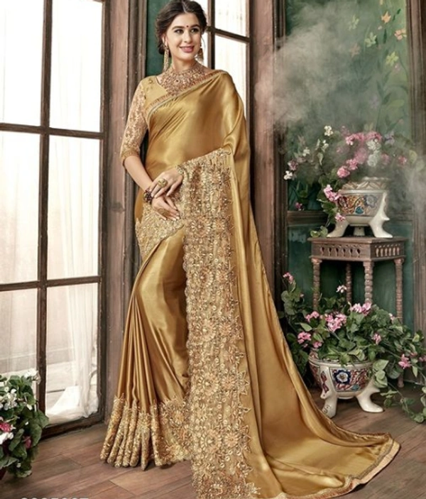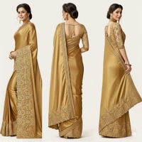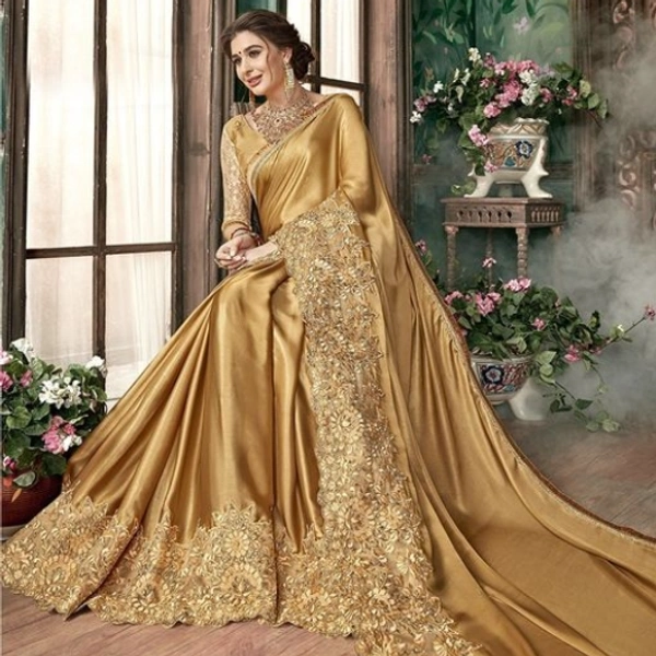 Lycra Embroidery Golden Colour Party Wear Saree for Weddings