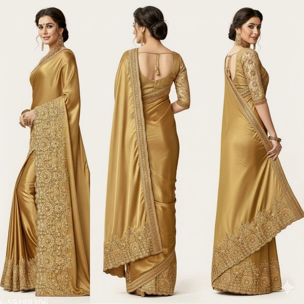 Don't miss the chance to own this stunning Lycra Embroidery Golden Colour Party Wear Saree. Be the radiant diva you were meant to be at your next big event. Order now from ConnectMall and experience the magic of timeless elegance!