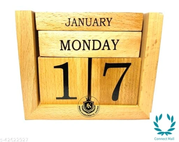 Mini Desk Calender Material: WoodType: OthersMultipack: 1Product Length: 11.5 cmProduct Height: 9 cmSeasoned teak wood is used to achieve a smooth finished .