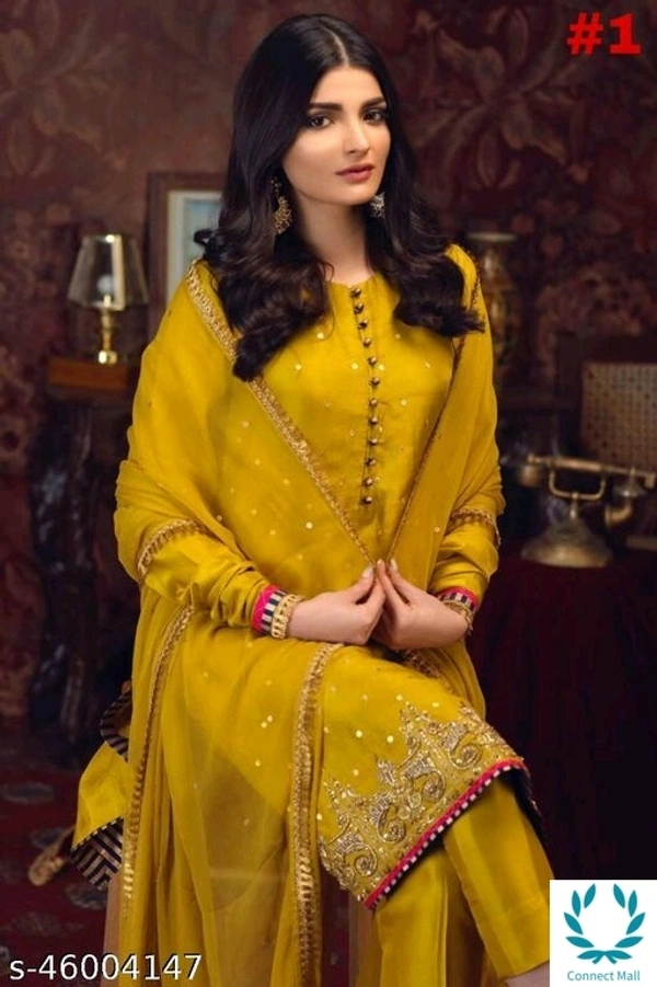 Pakistani Heavy Rubi silk With Embroidery Sequin Work Semi Stitched Dress