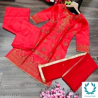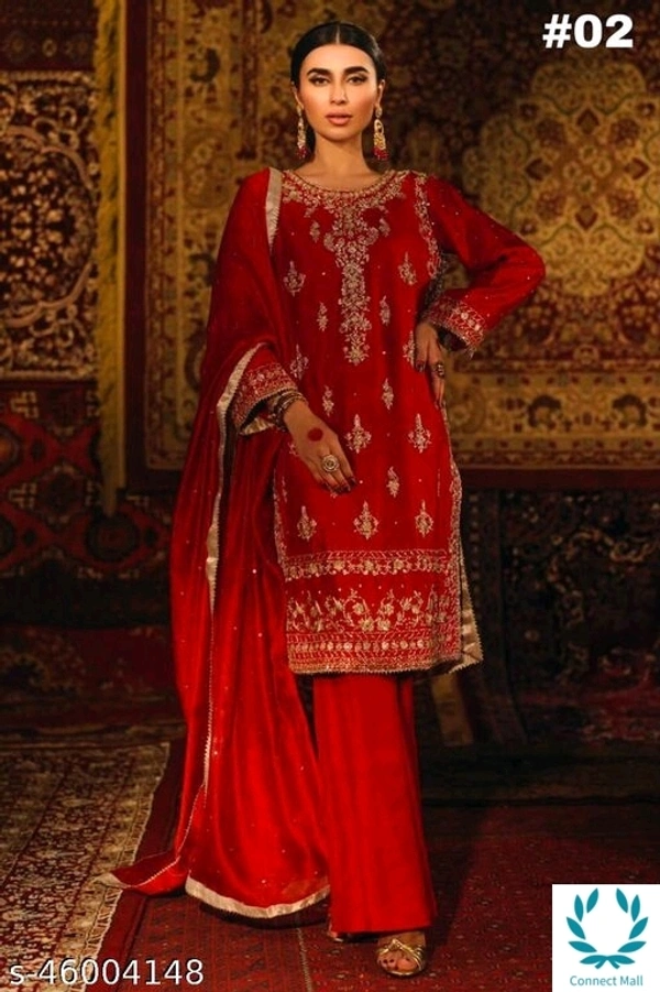 Pakistani Heavy Rubi silk With Embroidery Sequin Work Semi Stitched Dress