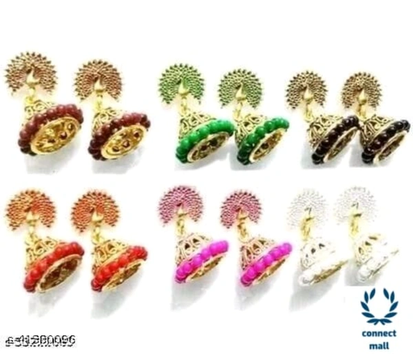Peacock Design Multicoclor Pearl Gold Platted Jhumka Combo of 6