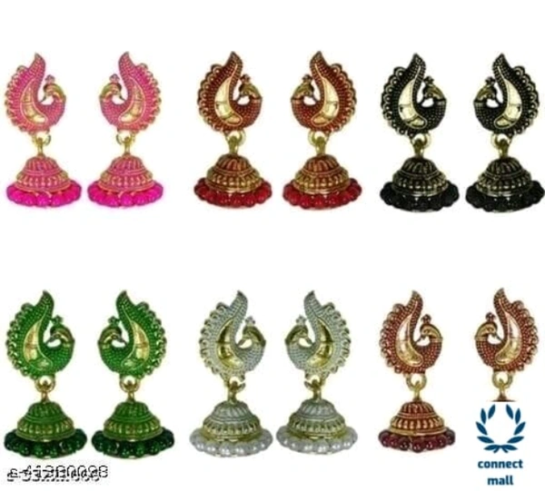 peacock Design Multicolor Adjustable Jhumka Combo of 6