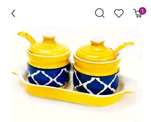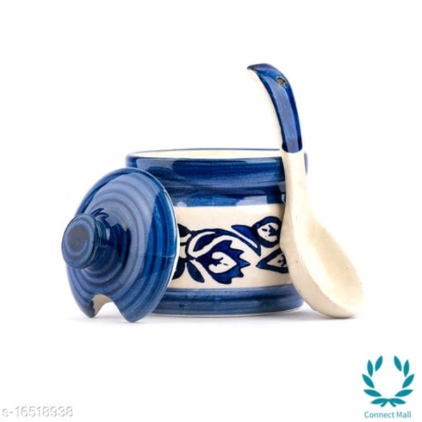 Ceramic Achar Pickle Barni with Lid and Spoon set of 2