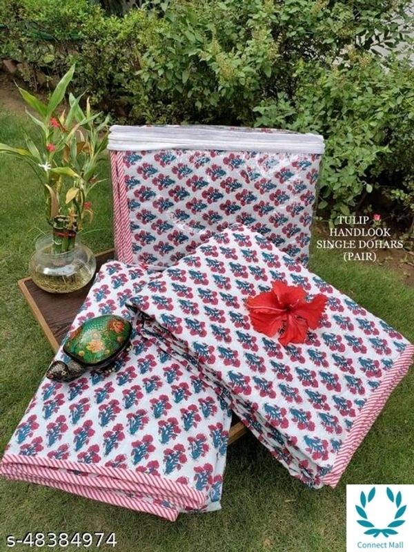 Set of 2 Single Bed Size Dohar 1+1 (Pair) 60*90 Inches 3 Layered Dohar Finished With Beautiful Piping on All 4 Sides Pure Cotton 100% and 200 GSM And Both Side Printed Dohar