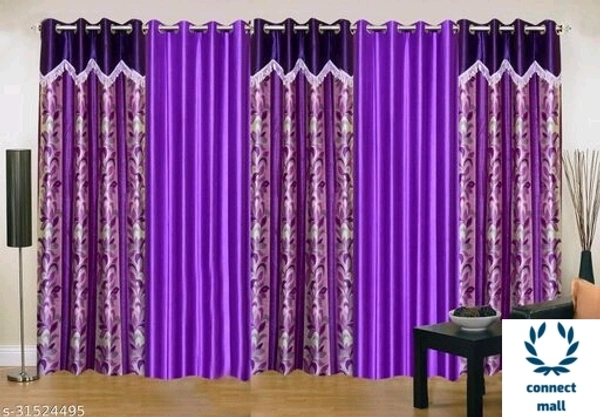 Purple Floral Designer Polyester Combo Long Door Curtains 9 Feet Pack of 6