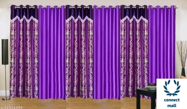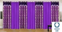Purple Floral Designer Polyester Combo Long Door Curtains 9 Feet Pack of 6