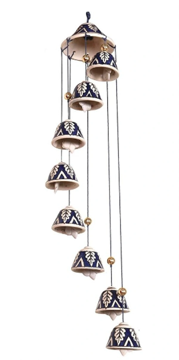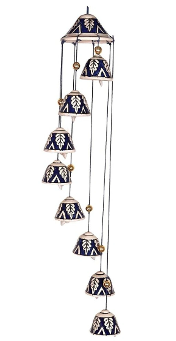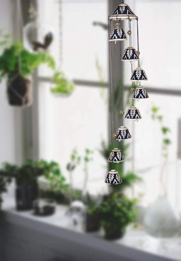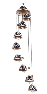 RAJ ROYAL Ceramic Blue Mughal Painting Wind Chimes Bell (8 Bells)