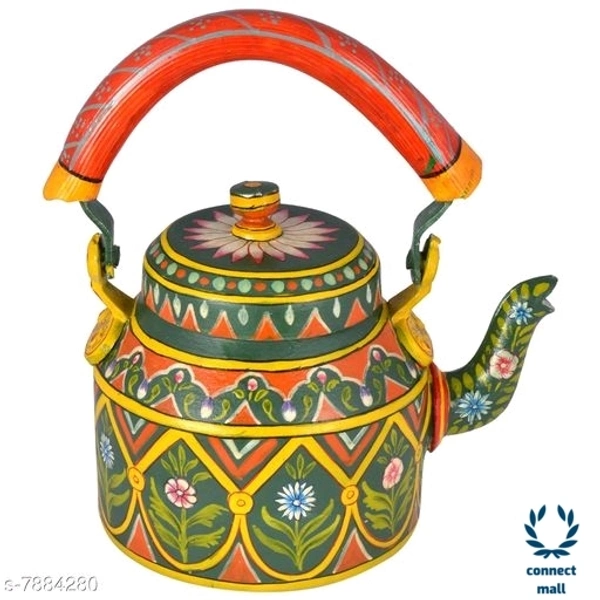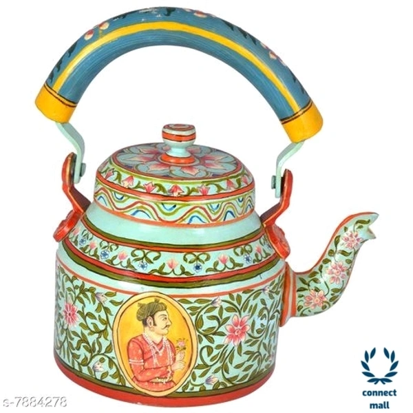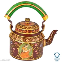 Rajasthani Craft Point Decorative Handpainted Aluminium Tea kettle MultiColour 1 Litre