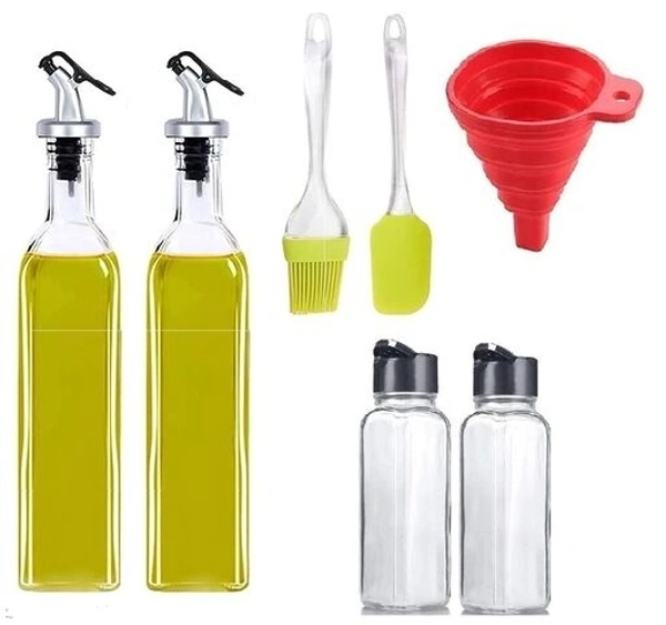 Set 2 Pieces 500ml Glass Oil Dispenser One Silicone Spatula,One Silicone Oil Brush Medium Silicon Foldable Funnel with Spice Jar Kitchen Accessories Combo Pack