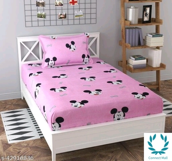Beautiful 240 TC 100 % Microfiber Elegant Design Micky Cartoon Pattern One Single Bed Sheet with 1 Pillow Covers (Bedsheet Size 90x60 Inch)( Pillow Cover Size 18x28 Inch) (Pink)