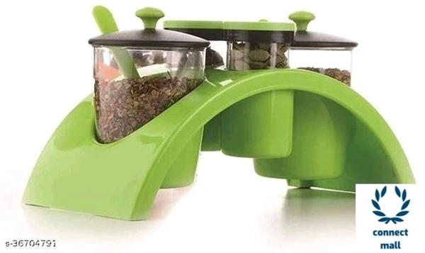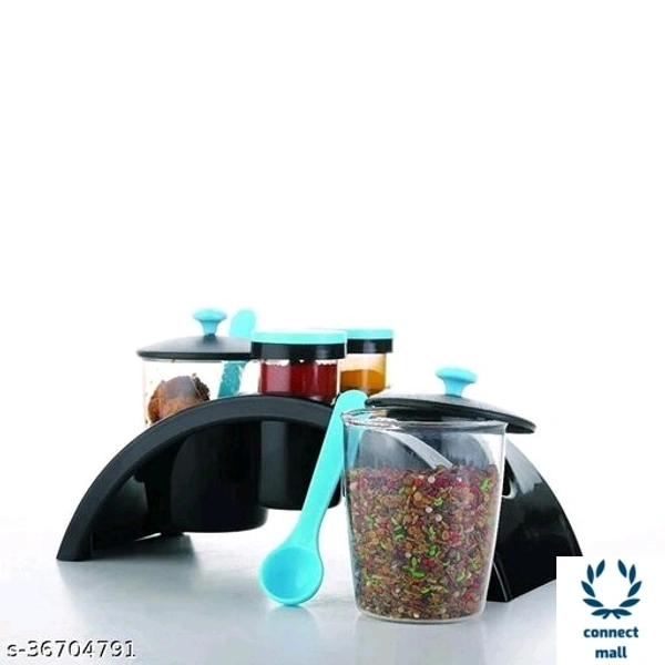 "PACKAGE CONTENT 4 Jars set(2 Spice Jar, 2 Pickle Jar), 2 spoon, 1 Tray. Useful for the storage of different type pickles, masalas, namkeens, chocolates, mouth fresheners and more at one place and make it convenient for your daily requirements. These container securely fits to the container so that no air can get in or out. Rest assured that you can store your seasonings with ease that its freshness will lastUnbreakable which is a plus point in this product,Beautifully designed 3 jars setGlossy look makes your kitchen and dining are beautiful, Modern class-villa kitchen spice rack all-in-one set for a joyful, organized and effortless cooking and dining experience."**COLORE SEND AS PER AVAILABLE**