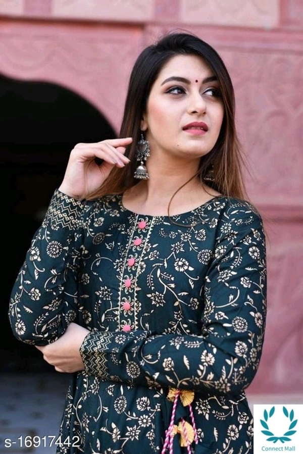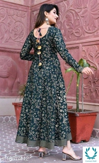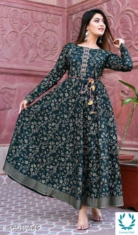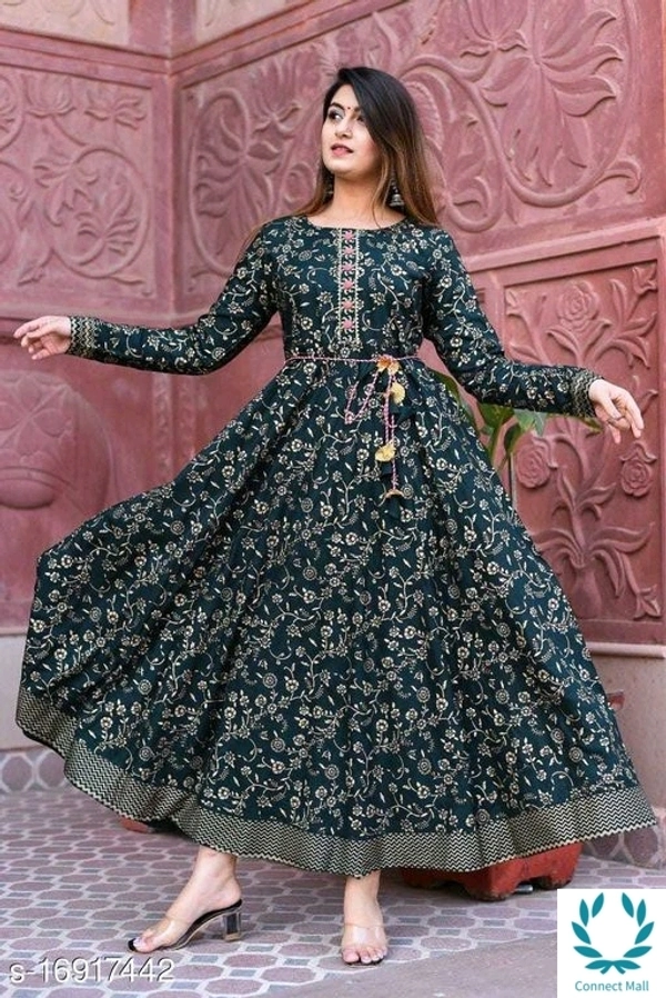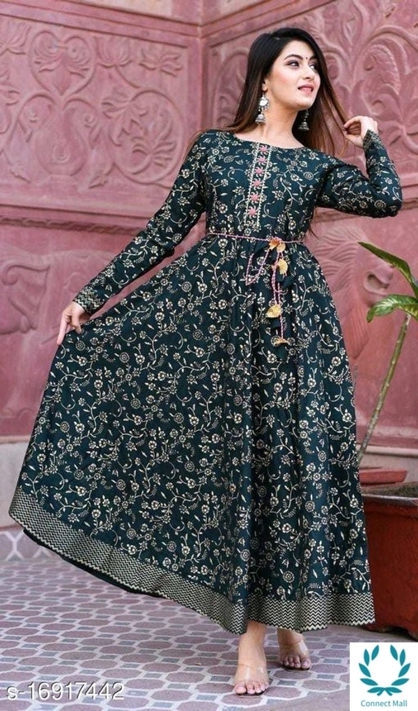 Stylish Floral Printed Anarkali Style Ankle Length Gown Kurti with Dori