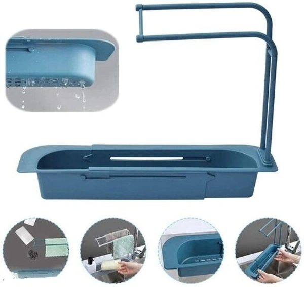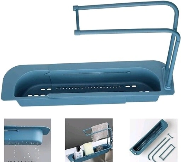 spancare Plastic Kitchen Sink Self Draining Shelf Sink Sponge Holder Telescopic Sink Shelf Adjustable Faucet Rack Dish Brushes Sponge Storage Shelves Sink Drain Basket Kitchen Sink Holder Rack(Multi) (pack of 1)