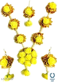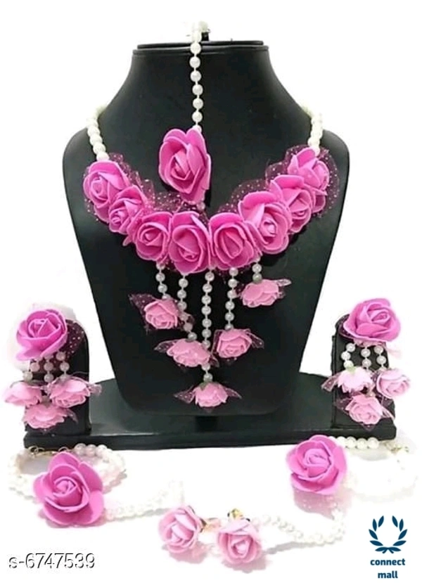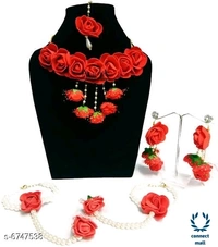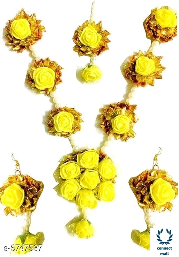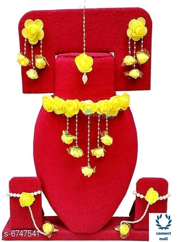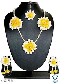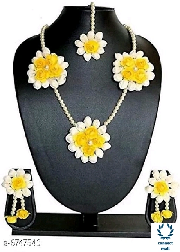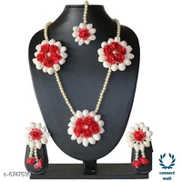 Trendy Floral Bridal Jewellery Set with mangtika for Women