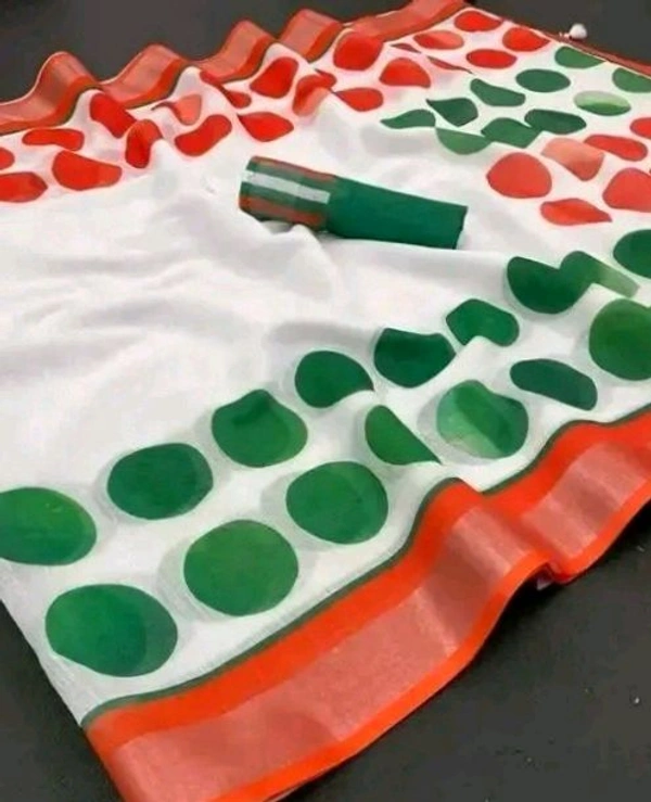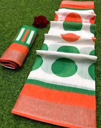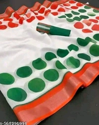 Women's Cotton Linnen Digital Print Tiranga Saree With Matching Blouse |Republic Day Saree