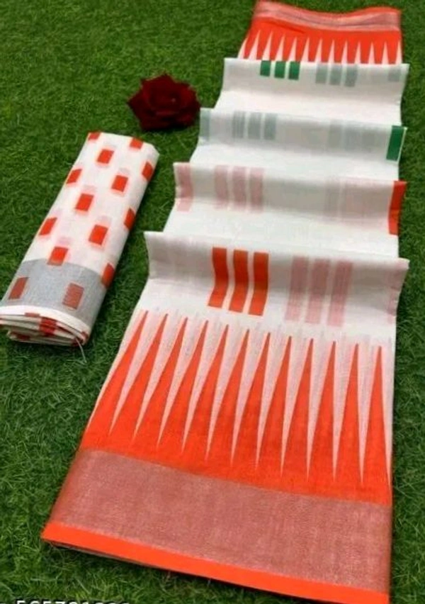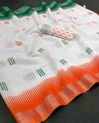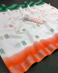 Women's Cotton Linnen Digital Print Tiranga Saree With Matching Blouse |Republic Day Saree