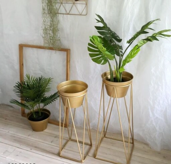 This elegant Weston Craft 2-piece iron plant stander set is designed to elevate your plants while enhancing your décor. Made from durable iron and finished in rich gold, these stands bring a modern and stylish look to any corner of your home. With a height of 50 cm and a compact 10×10 cm base, they fit easily into small spaces while adding height and charm. Ideal for balconies, living rooms, patios, and office décor.