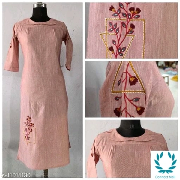 Women's Solid Cotton KurtiFabric: CottonSleeve Length: Three-Quarter SleevesPattern: SolidCombo of: SingleSizes: