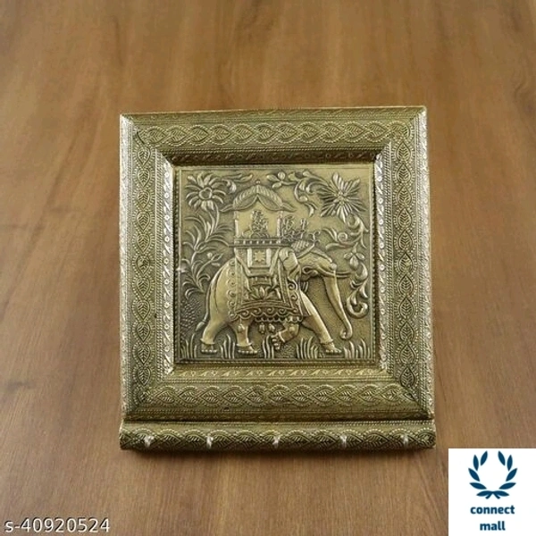 Handcrafed Brass Coated Embosed Design Wooden Key Stand